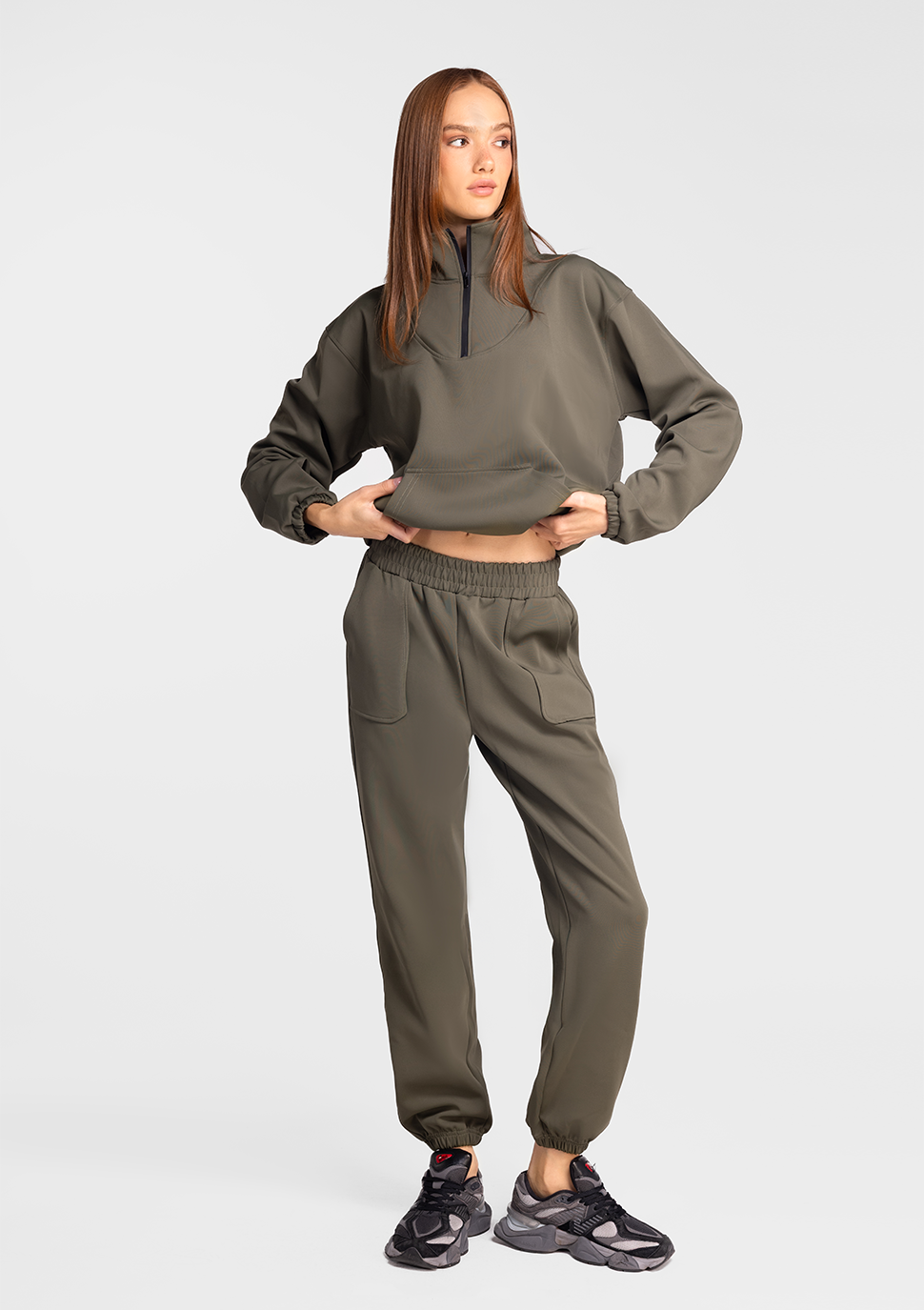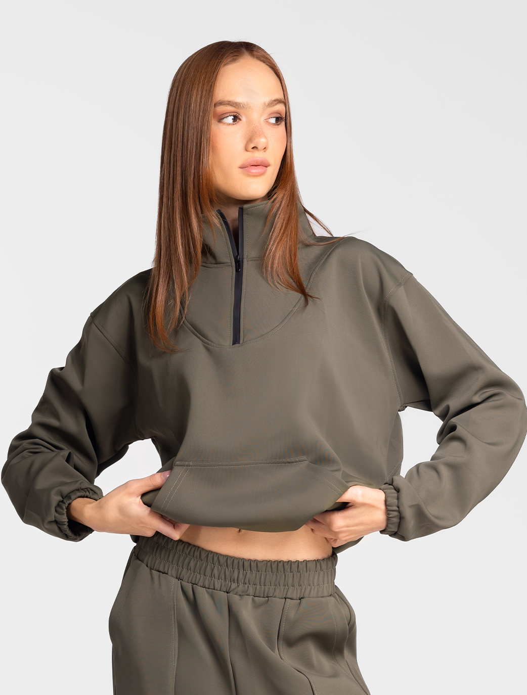 Casual meets cool with the Ankly Top designed for those who love cozy but crave style. This half-zip pullover features a high collar, kangaroo pocket, and adjustable drawstring hem for a custom fit that moves with you. Whether layered or worn solo, it’s the perfect companion to the Ankly Pant, bringing easygoing edge and sporty vibes to your loungewear game.