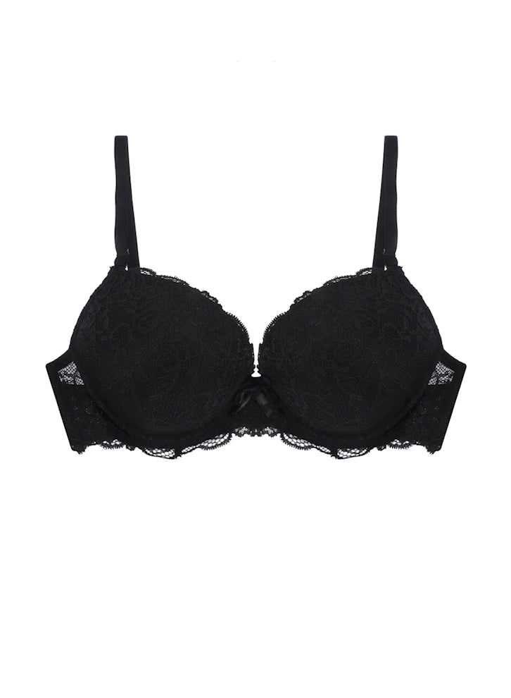 Our full floral lace Dentelle bra with removable pads will give you a natural or pushed up shape as you desire.