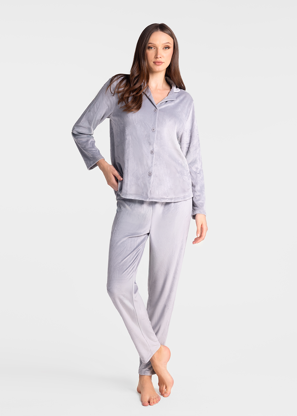 Chimny Chemise in dark grey offers a cozy, stylish option for lounging or sleepwear. Made from plush, soft fabric, it features a relaxed fit with a classic button-down front and long sleeves. Its rich dark grey color adds a touch of elegance to your comfort essentials.