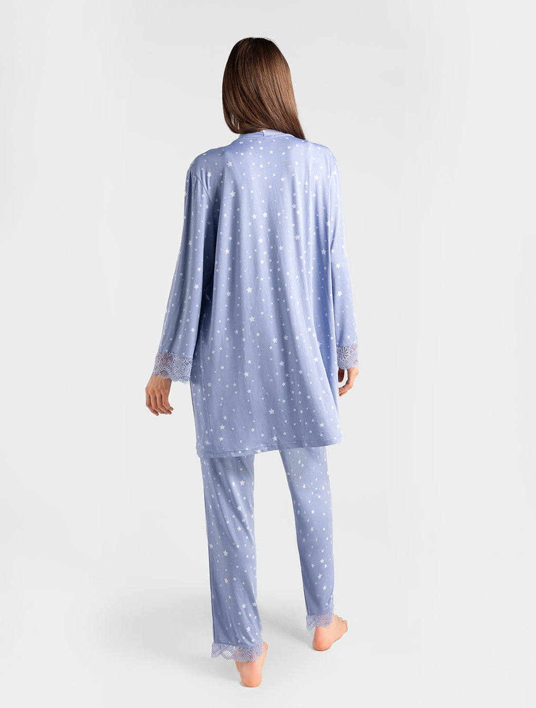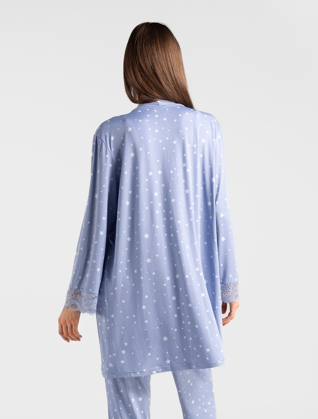 This micro satin robe, dotted with charming mini stars, blends sleek style with cozy comfort for your perfect nighttime ritual.