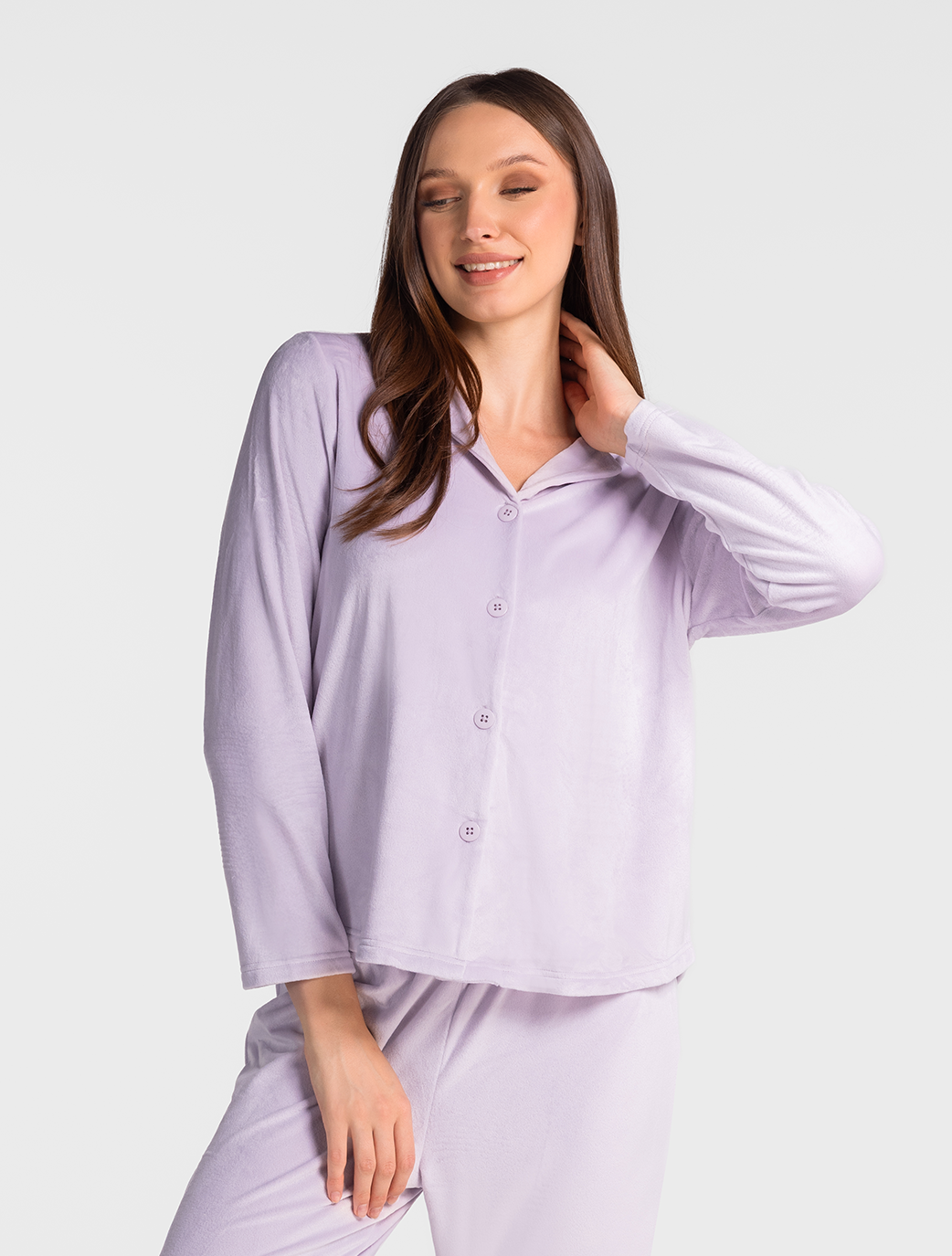 Cozy light purple super fleece pants with a relaxed fit, perfect for comfortable lounging or sleeping in style. Soft, warm, and easy to wear all day long.