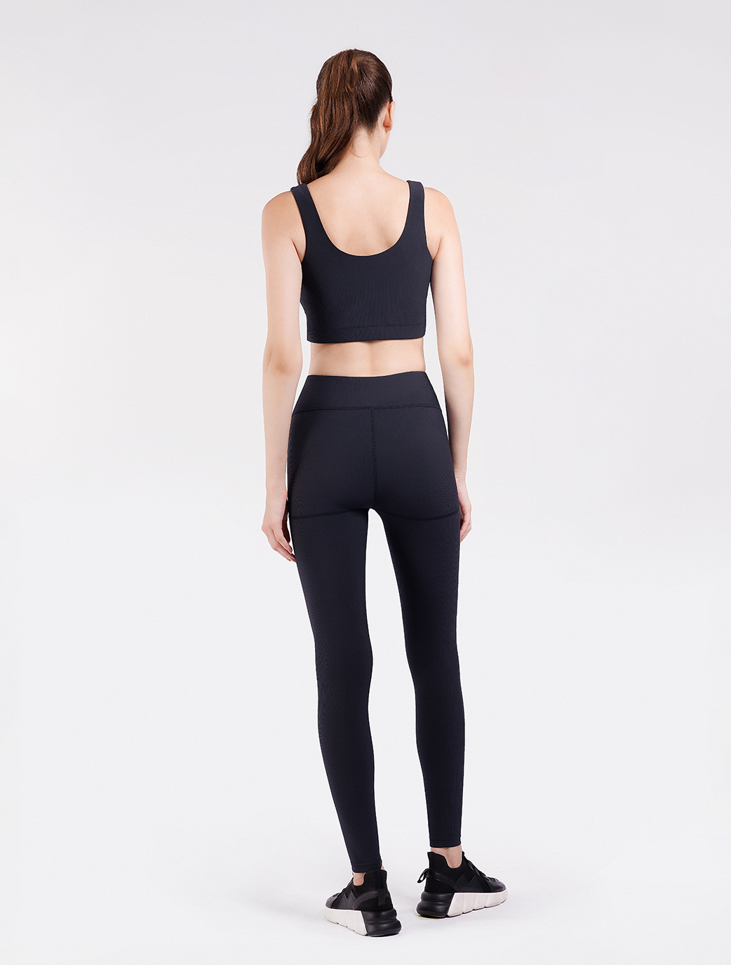 Fan ribbed leggings crafted with precision, enhanced by decorative stitching in a matching color. These leggings blend seamless comfort with stylish detailing, perfect for workouts or lounging.