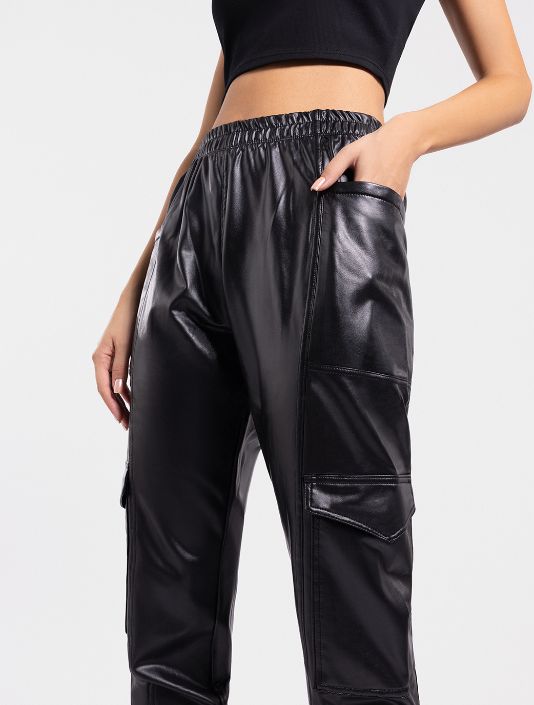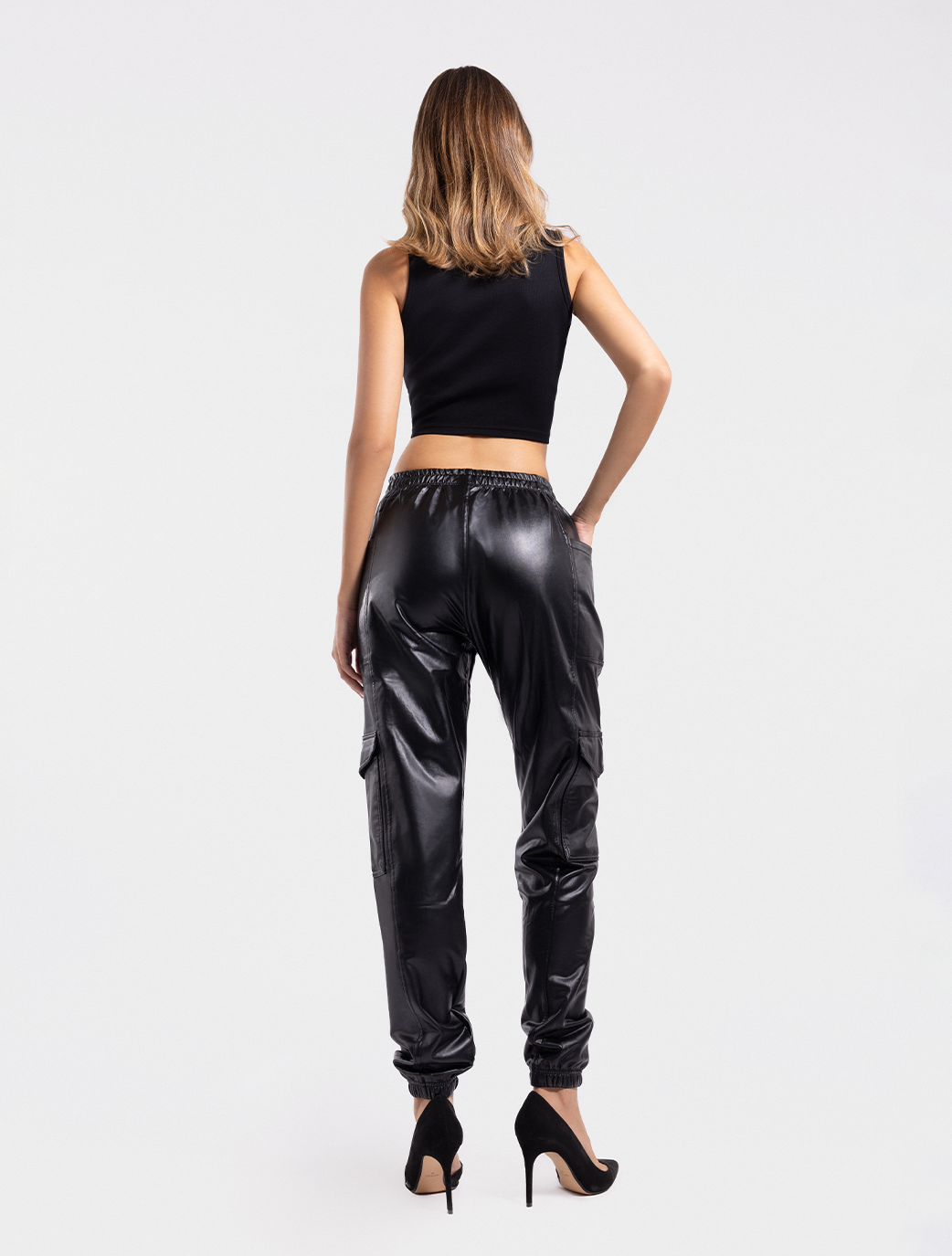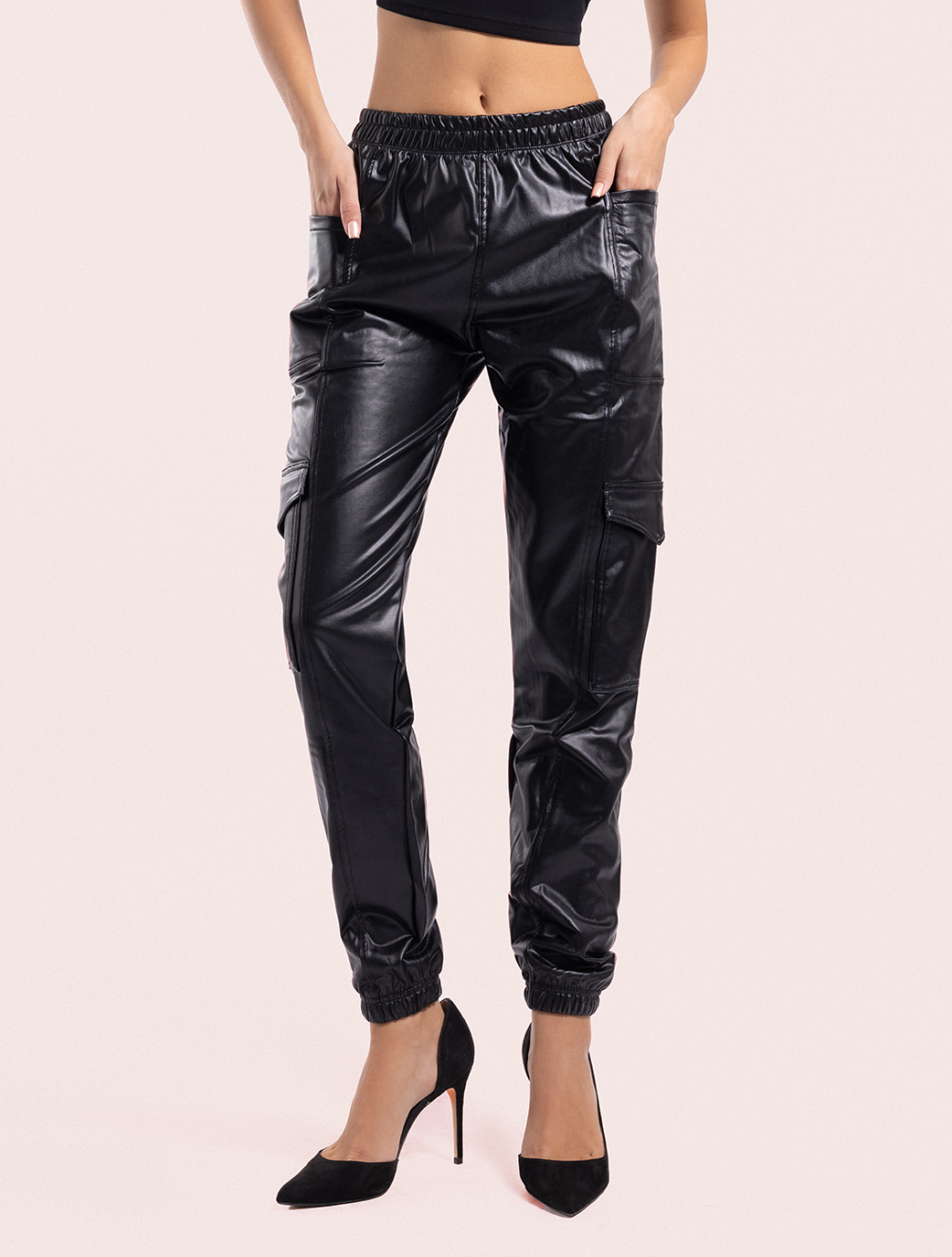 Add some texture to your new season look with these bottoms. Featuring a black faux leather material with an elasticated waist and cargo style design, we are in love. Wear with a white crop-top and chunky boots for a day out with the dolls.