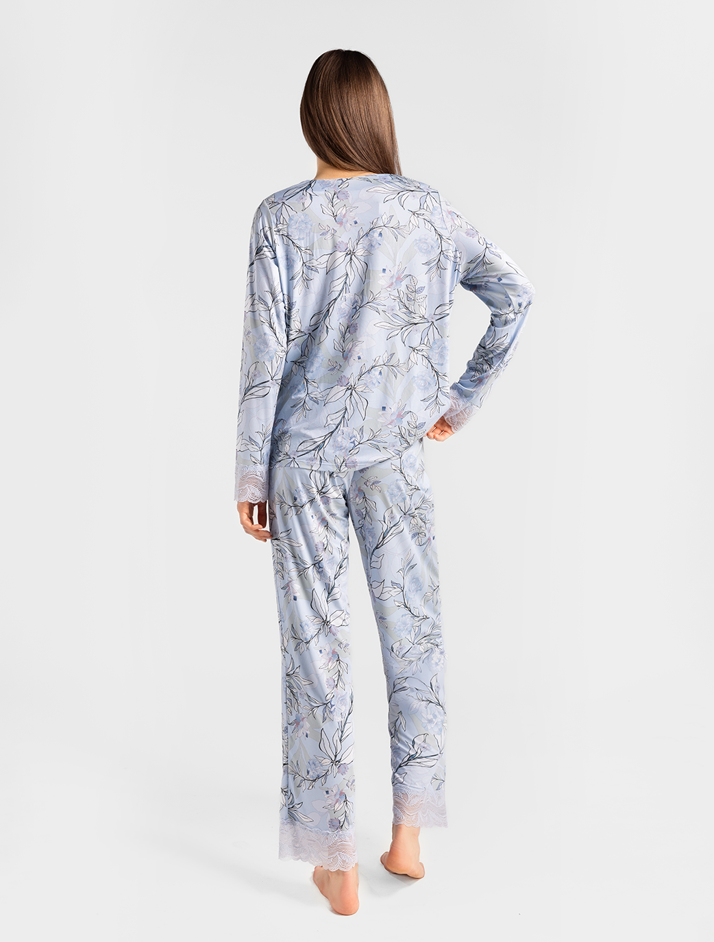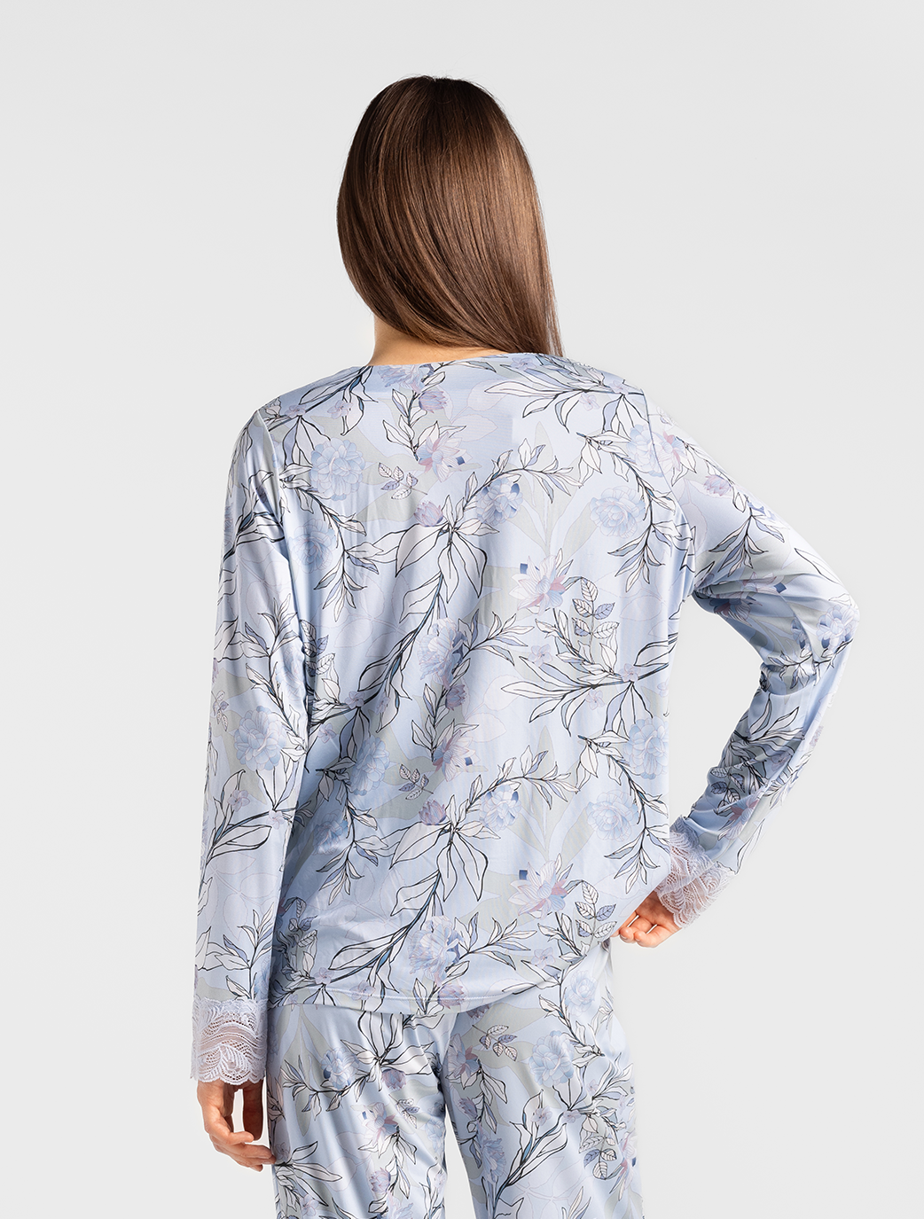 Micro satin pajamas featuring a vibrant flower print, crafted to bring a touch of nature’s beauty to your nighttime routine.