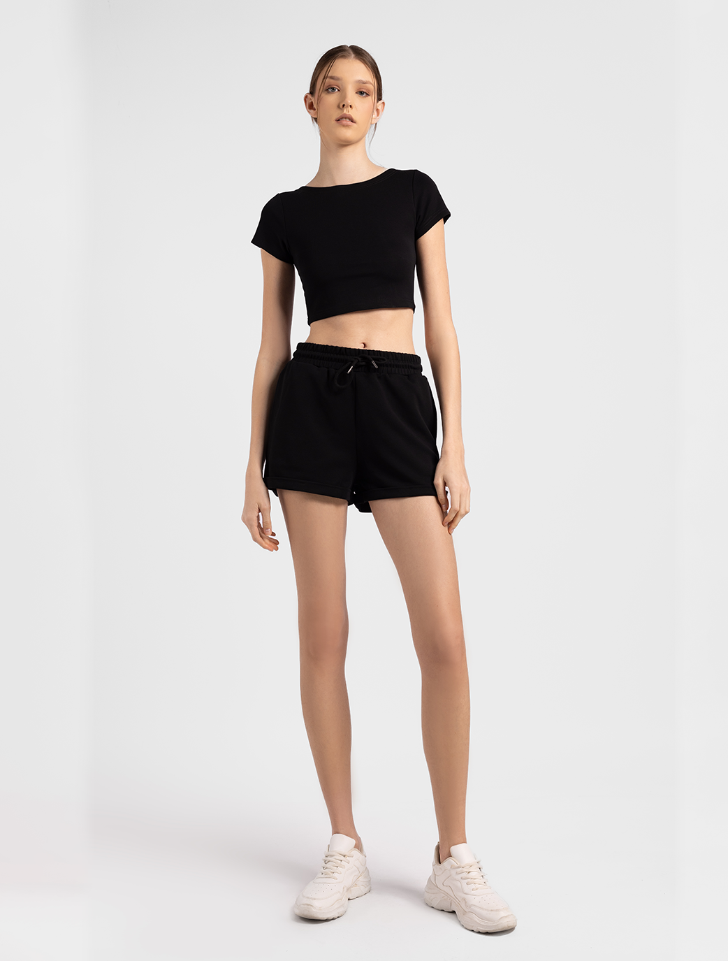 On-the-go summer styling made easy. Perfect for airport days or relaxed evenings at the beach, these shorts are crafted from lightweight, textured ribbed cotton with a hint of stretch for added comfort. They feature an elasticated waistband and are finished with two side patch pockets for a practical yet stylish touch.