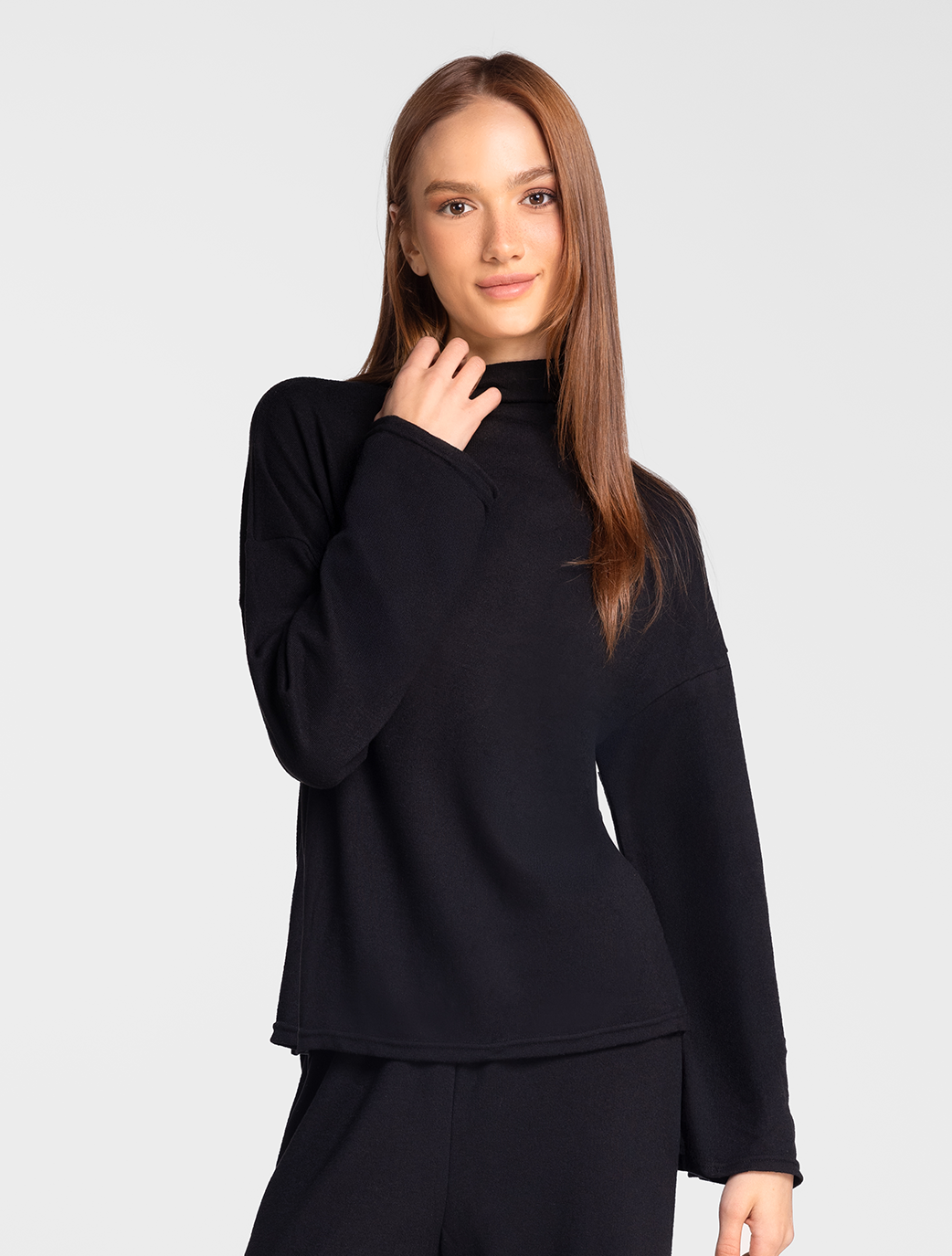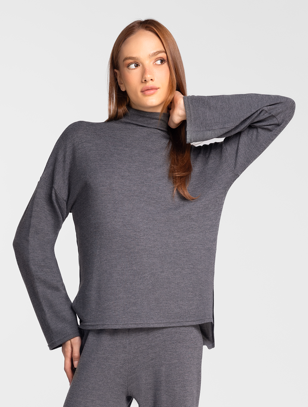 Embrace calm and effortless style with the Recharge Top. This wide, relaxed silhouette combined with a soft turtle neck creates the perfect cocoon for chilly days and slow moments. With oversized cuffs and a ribbed hem for subtle texture, it’s an elegant mix of cozy and cool — ideal for layering or standing out on its own.