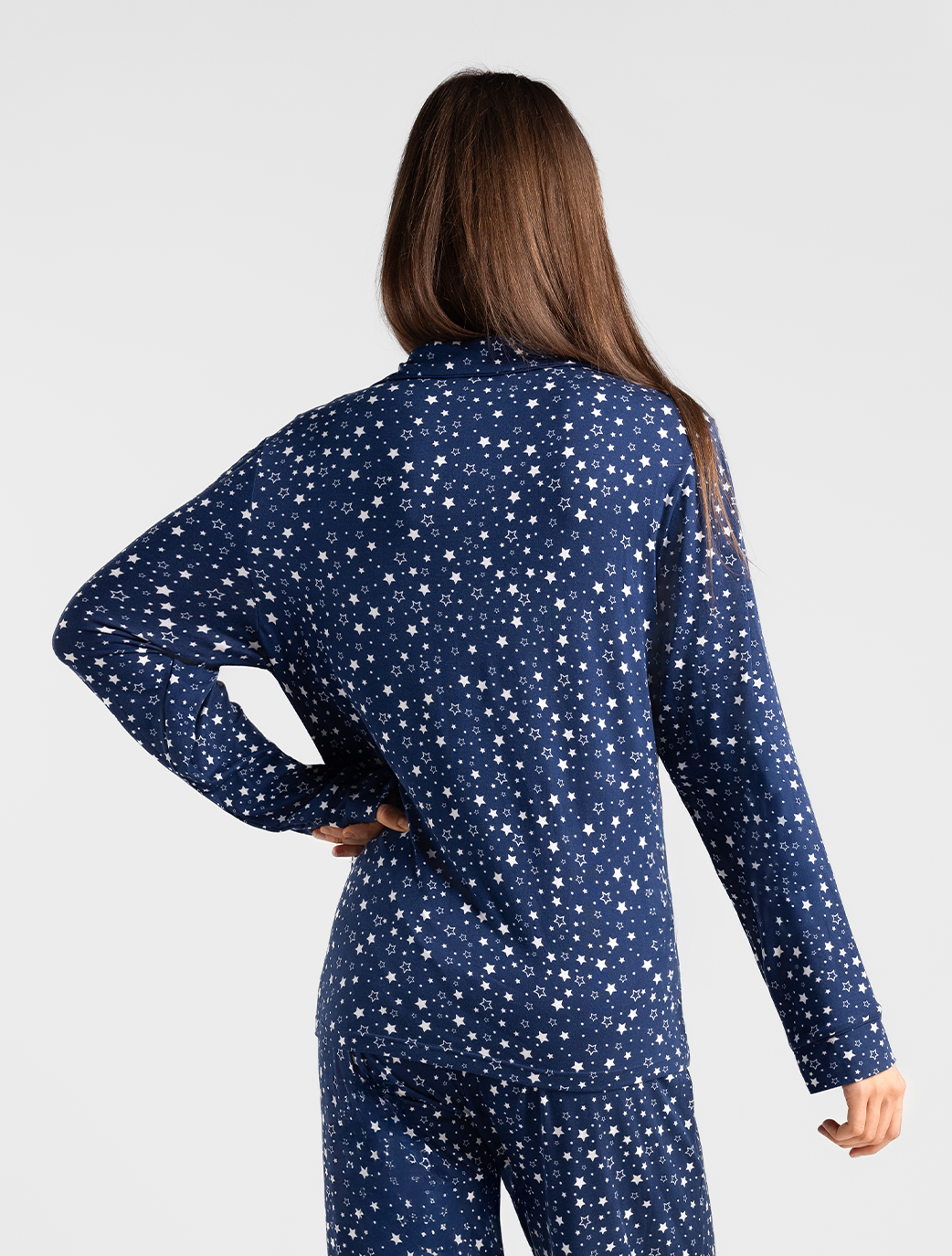 Dazzle yourself with the Nightsky Starlight pajama, featuring a dreamy starry print that brings the magic of the night sky to your bedtime routine.