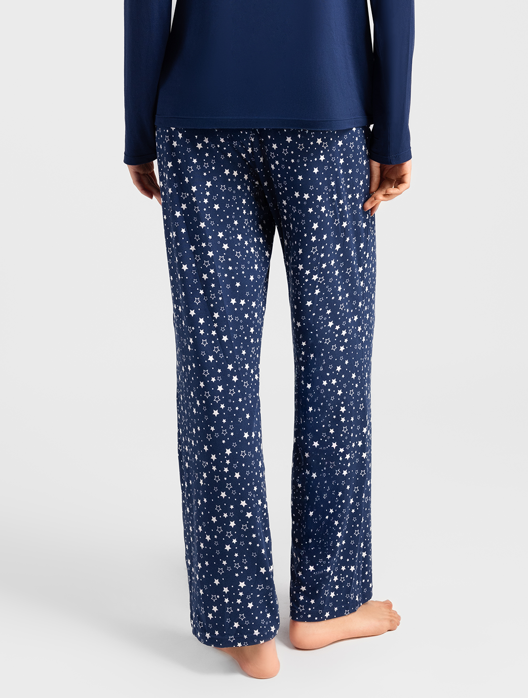 Drift off among the stars with Starin Pajama, inspired by the beauty of the night sky. Featuring a deep navy base adorned with a whimsical space-themed pajama pant print, this set brings a cosmic charm to your bedtime routine. Made from soft, breathable fabric, it's designed for comfort that’s out of this world.