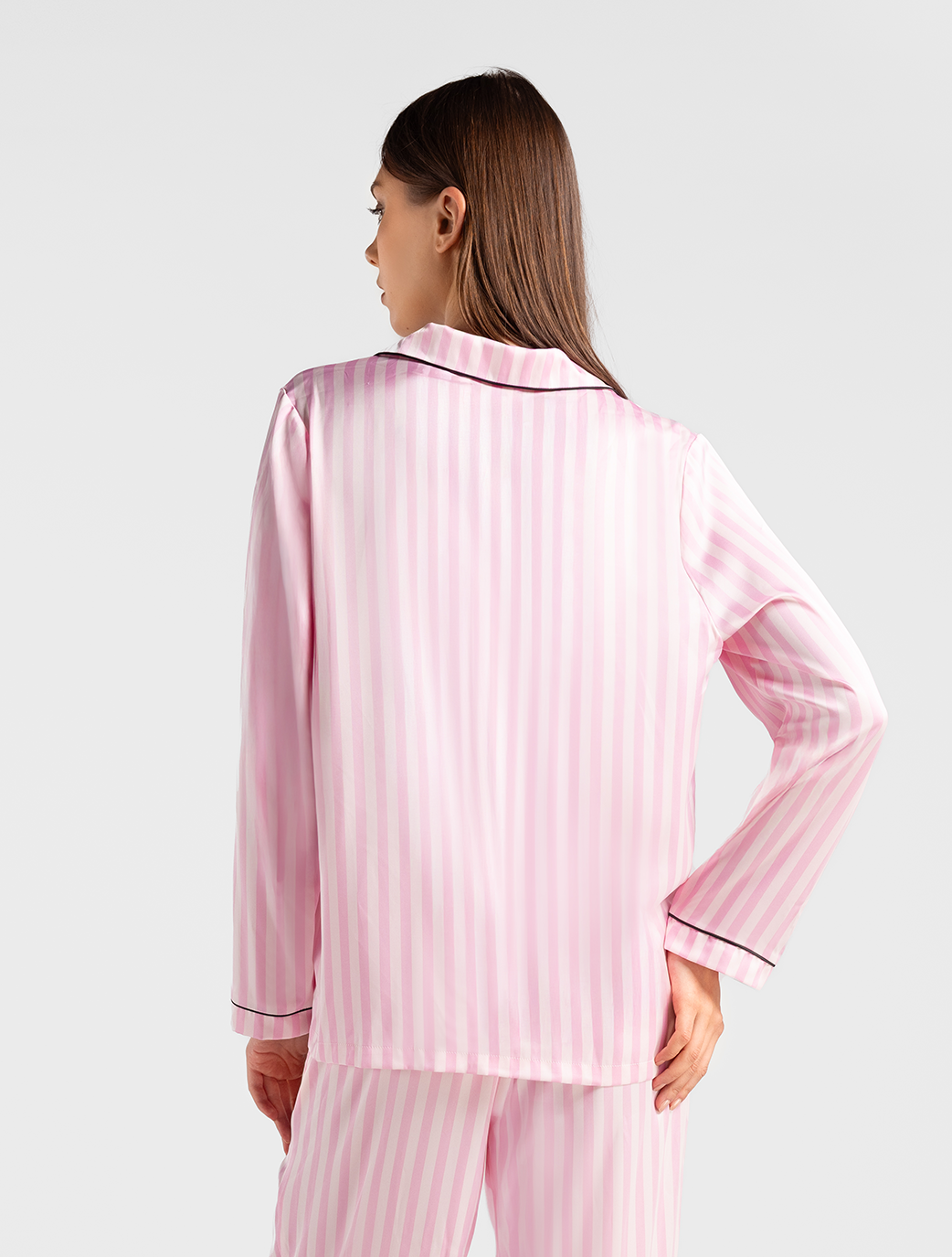 Chase winter chills away in the Strippa satin PJ, dressed in delicate horizontal pink stripes for a touch of softness and shine.