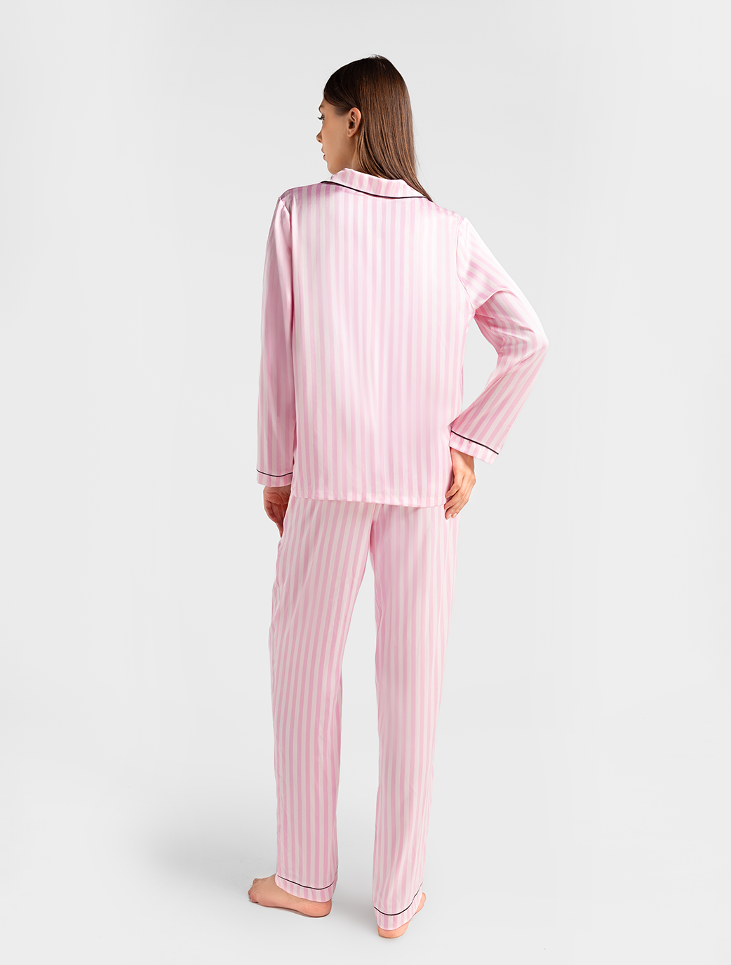 Chase winter chills away in the Strippa satin PJ, dressed in delicate horizontal pink stripes for a touch of softness and shine.
