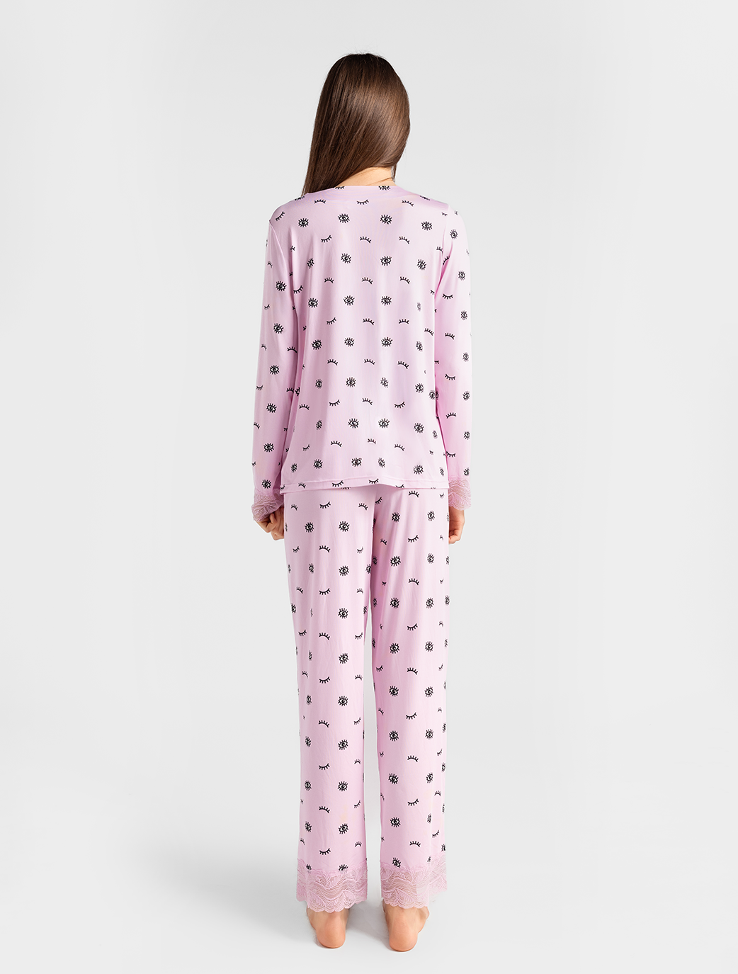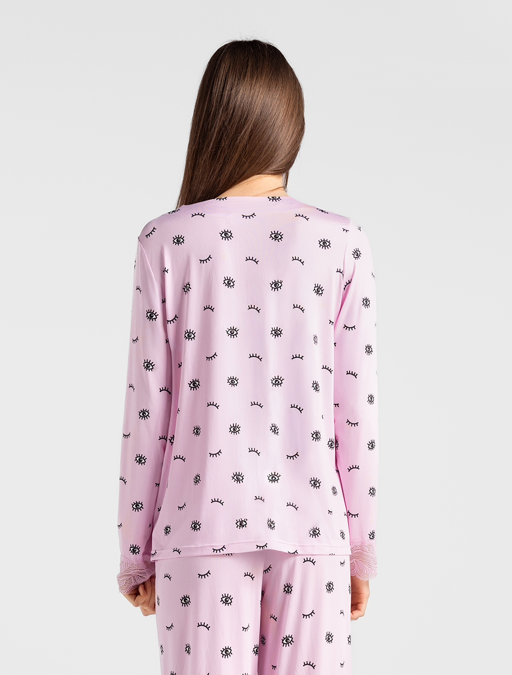 Sleep beautifully in this eye-catching pajama set, crafted from soft micro satin that gently hugs the skin for a more comfortable night’s rest.